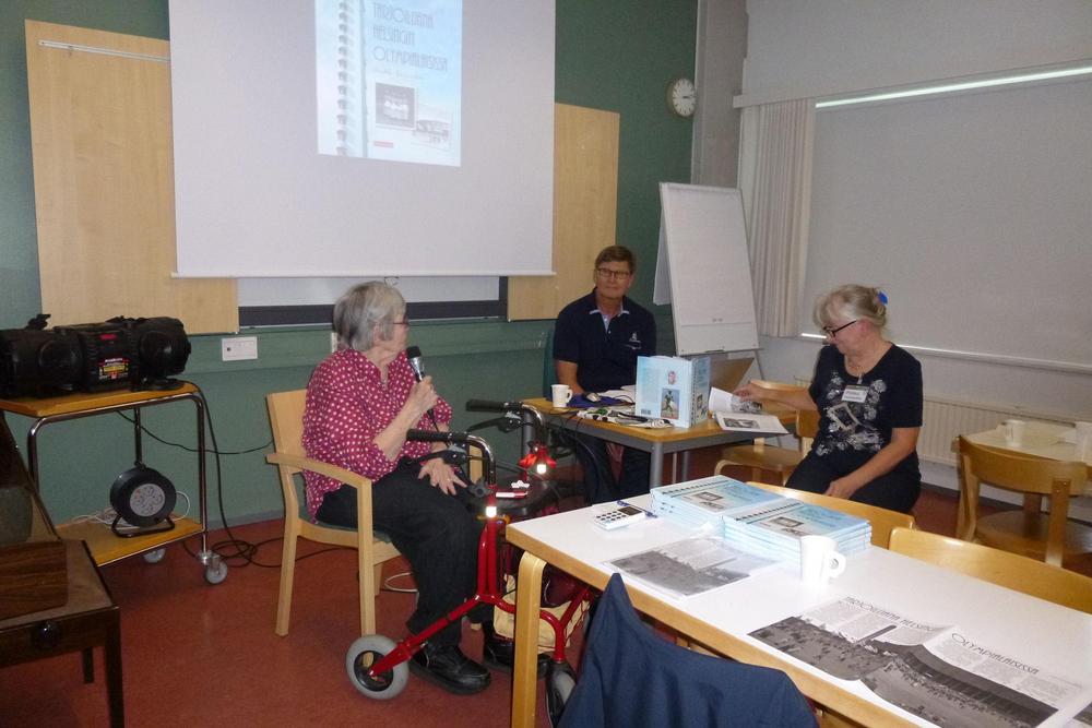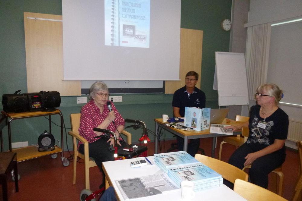 Vieraaksemme saapui Sinikka Koivuniemi, joka kertoi nuoruudestaan ja kokemuksistaan Helsingin Olympialaisissa.