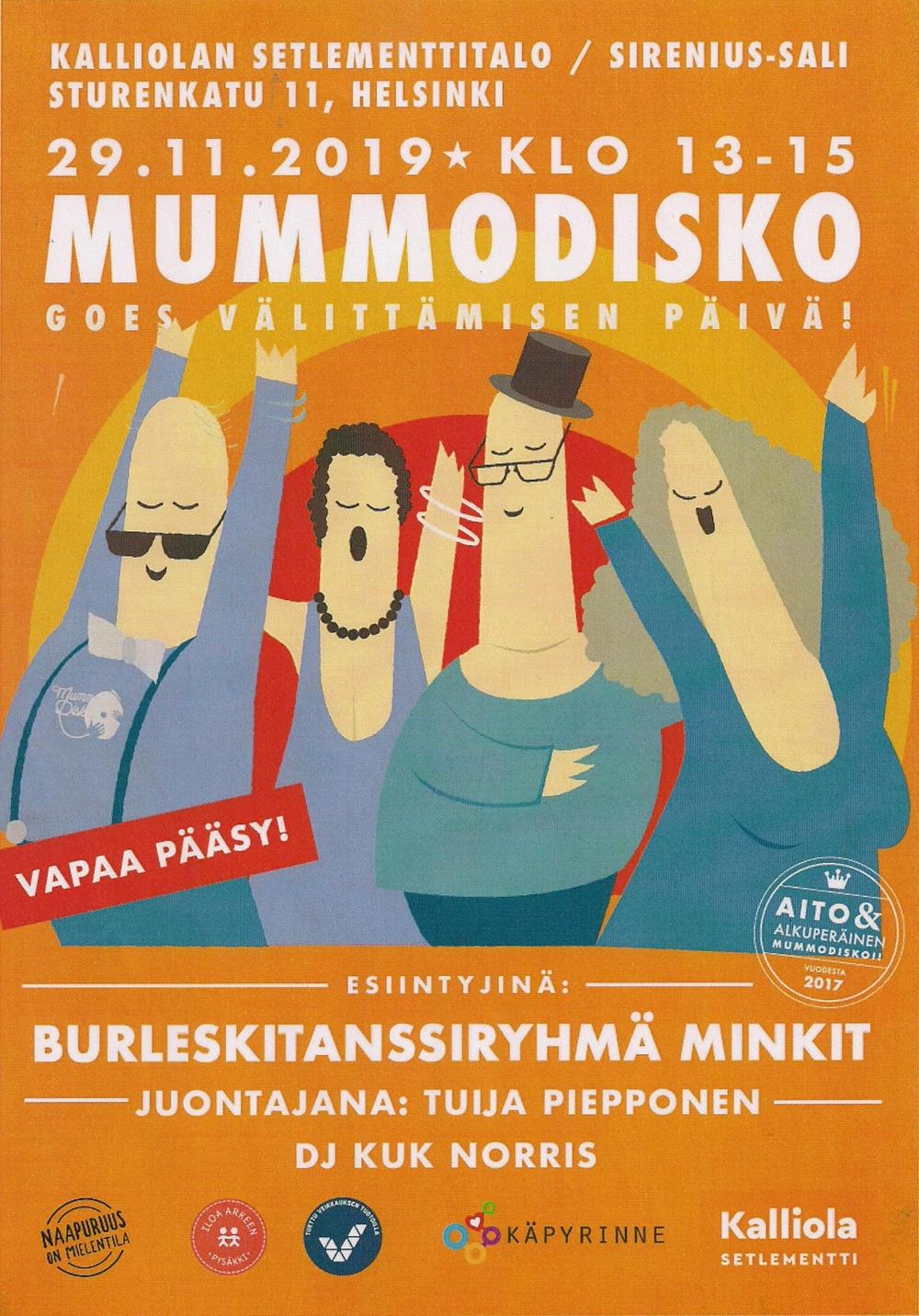 Hän kertoi myös 29.11 tulossa olevasta Mummodiskosta (katso kuva alempana).