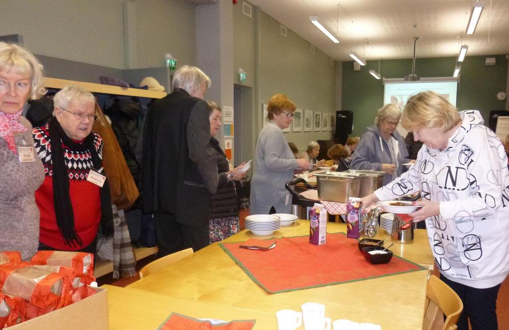 Kokousta jatkettiin nauttimalla herkullista riisipuuroa sekä kahvia ja joulutorttuja. Arpoja myytiin ja voittoina oli muutama Joulukassi.