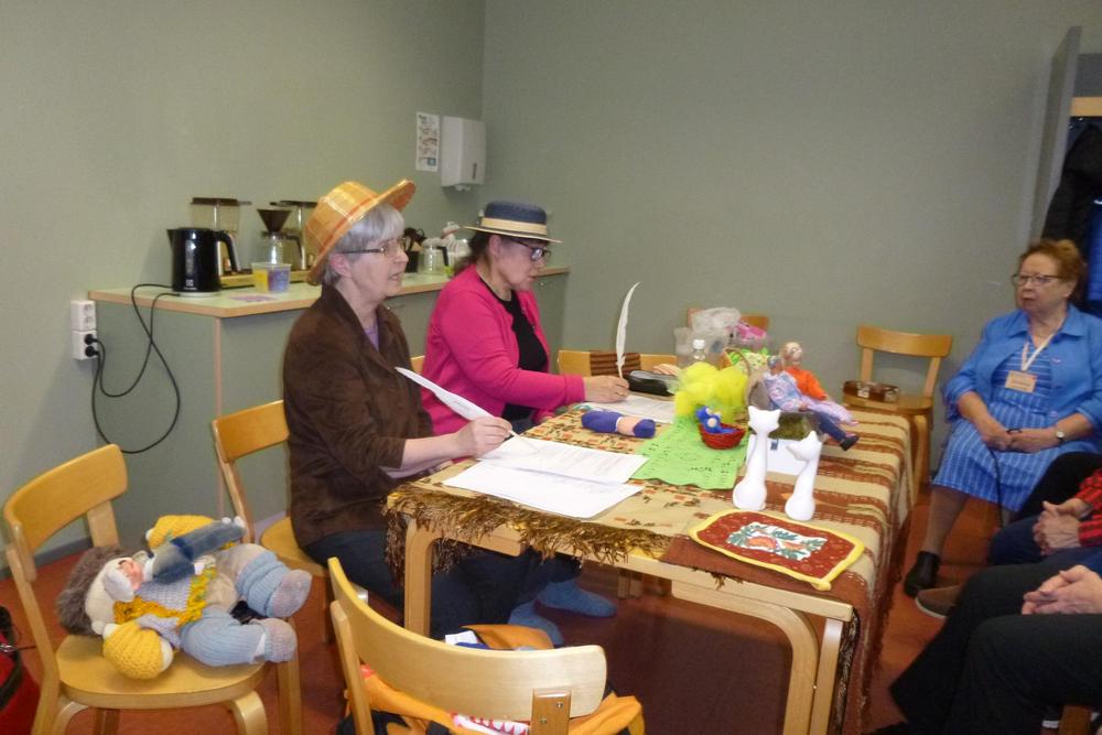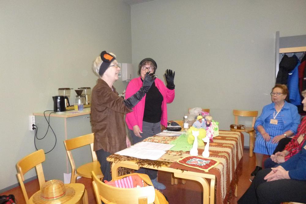 Kokoukseen tuli Villasukkateatteri, joka esitti nukketeatteria aikuisille.
