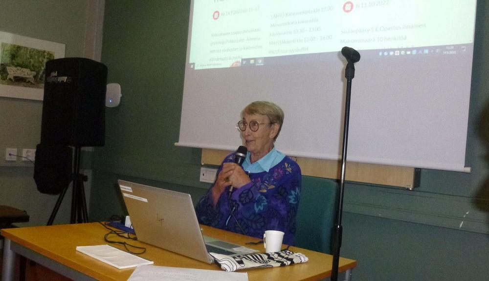 Puheenjohtaja Pirkko esitteli Kotisivujemme uutisia, lähinnä tulevan Helsingin vanhusneuvoston ja Eläkeläisjärjestöjen avoimen yleisötilaisuuden 23.11.2022.