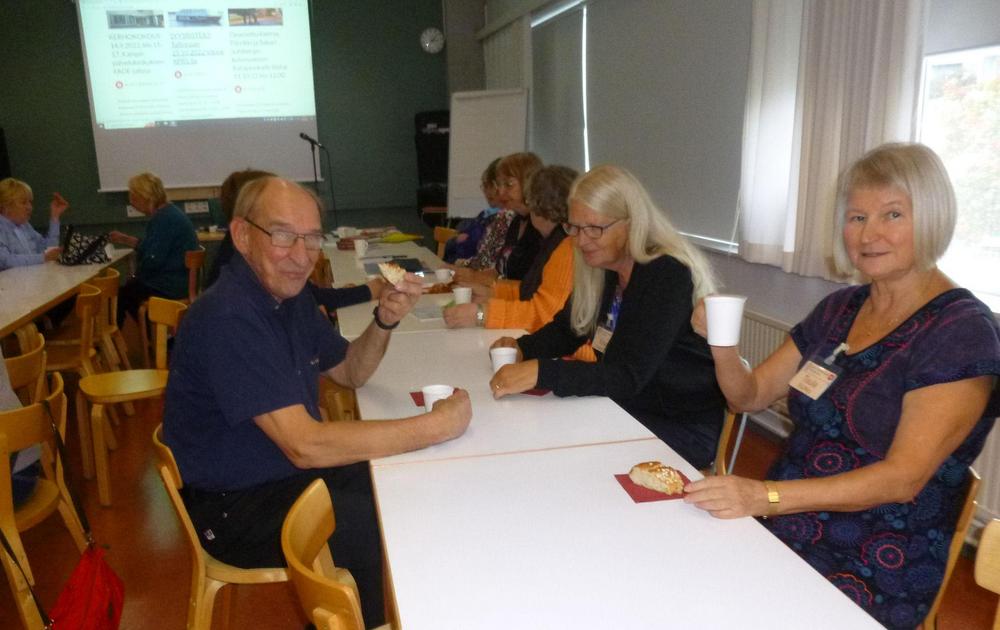 Kokouksen alussa nautimme kahvit pullan kera ja rupattelimme kuulumisia.