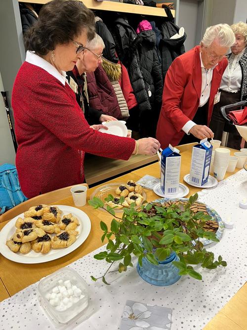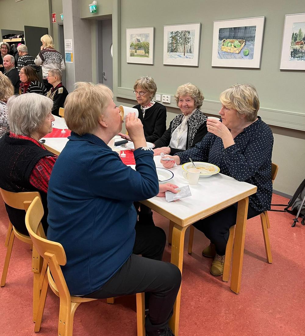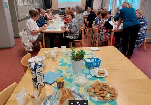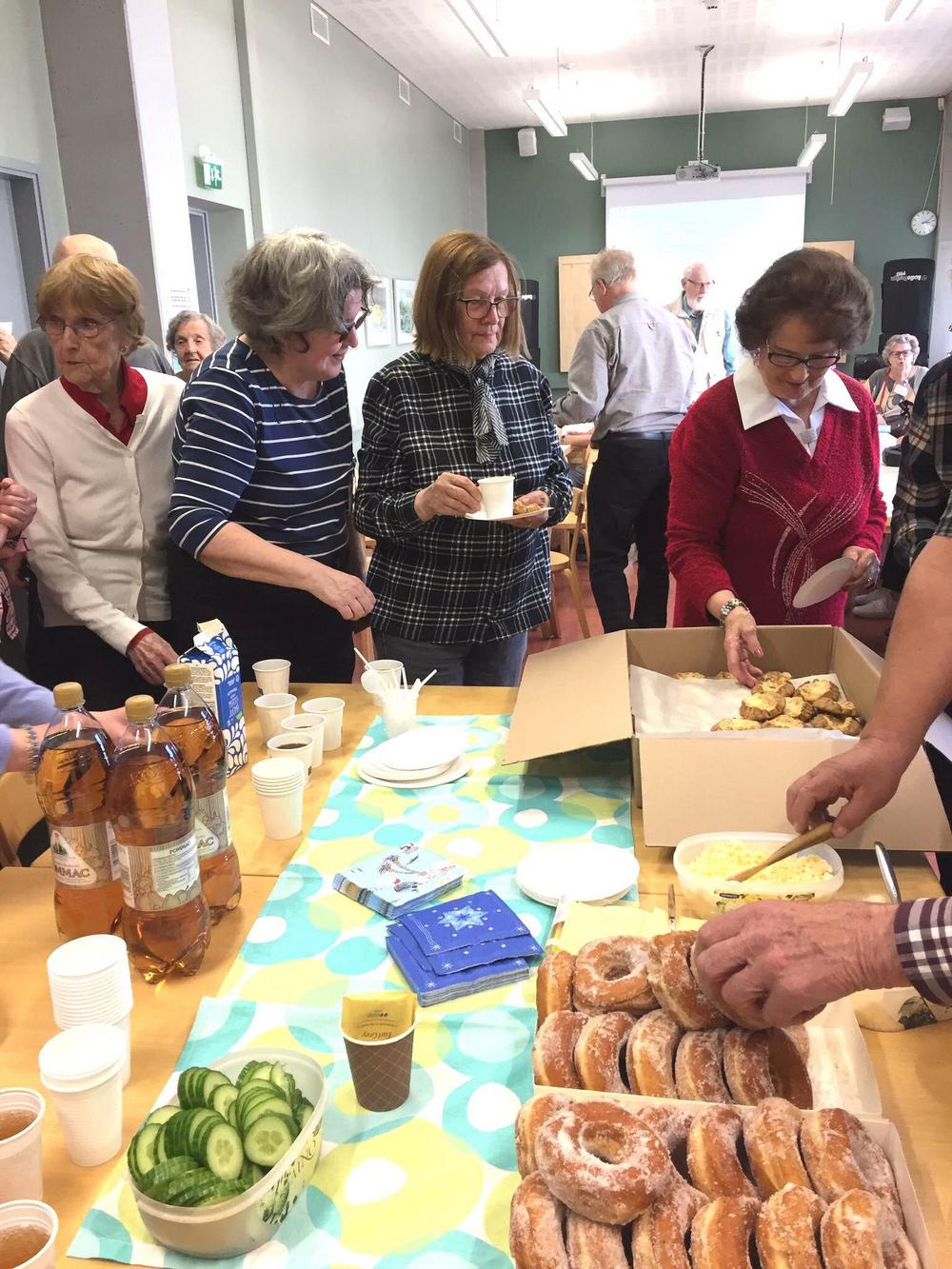 Kevätkauden viimeistä kerhokokousta vietettiin nautiskellen, oli suolaista ja makeaa, karjalanpiirakoita munavoilla sekä munkkirinkilöitä.