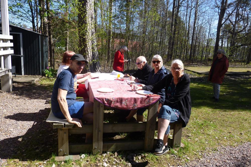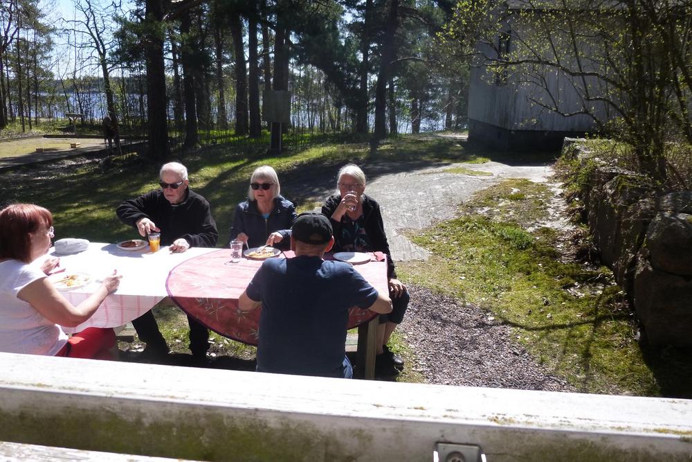 Vietimme kaunista ja lämmintä kesäpäivää, nauttien grillattua makkaraa salaattien kanssa. Jälkkäriksi oli kahvia ja munkkeja.