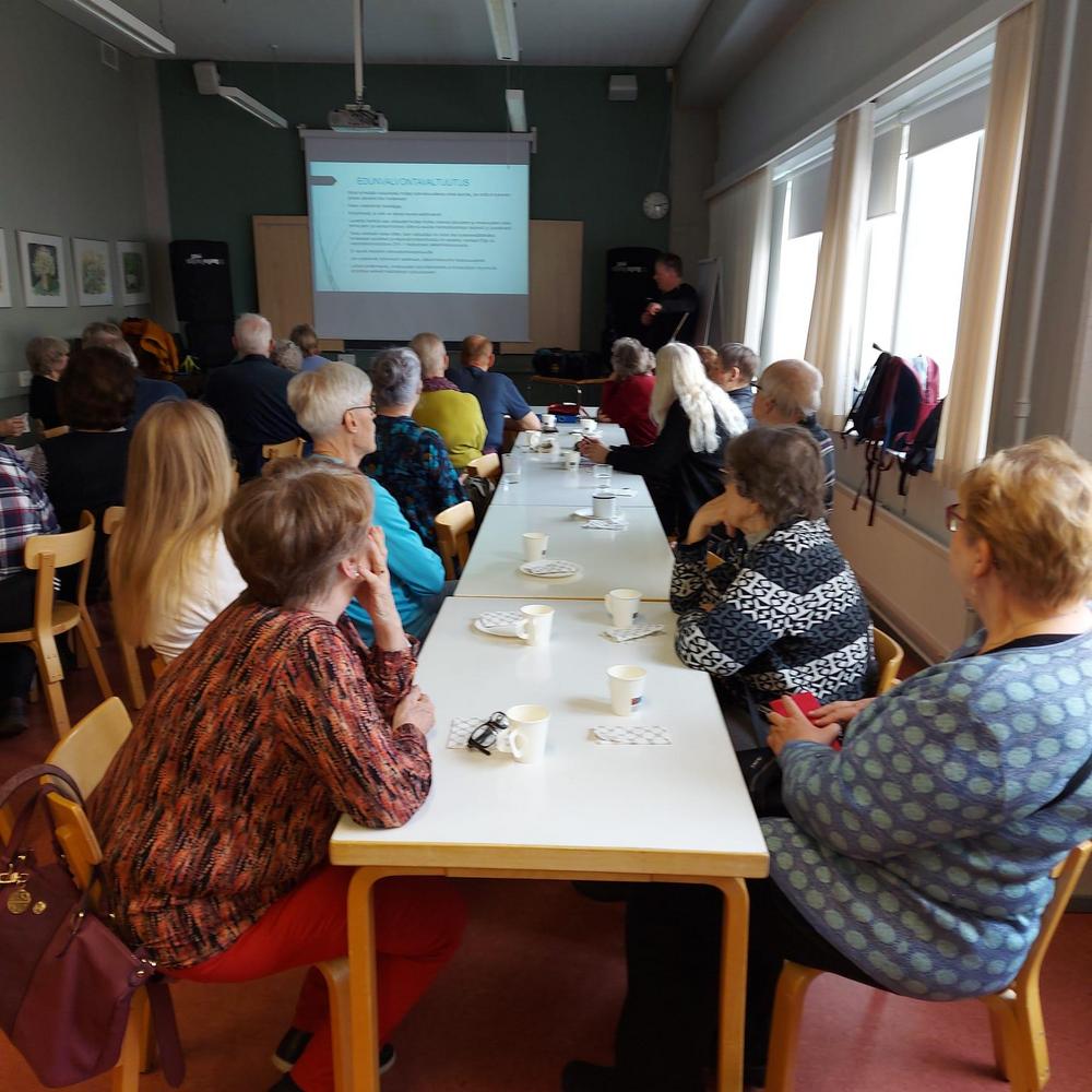 Luennoitsija Jari Jokiluhta, Helsingin muistiyhdistys ry, oli saapunut kertomaan edunvalvontavaltuutuksesta.