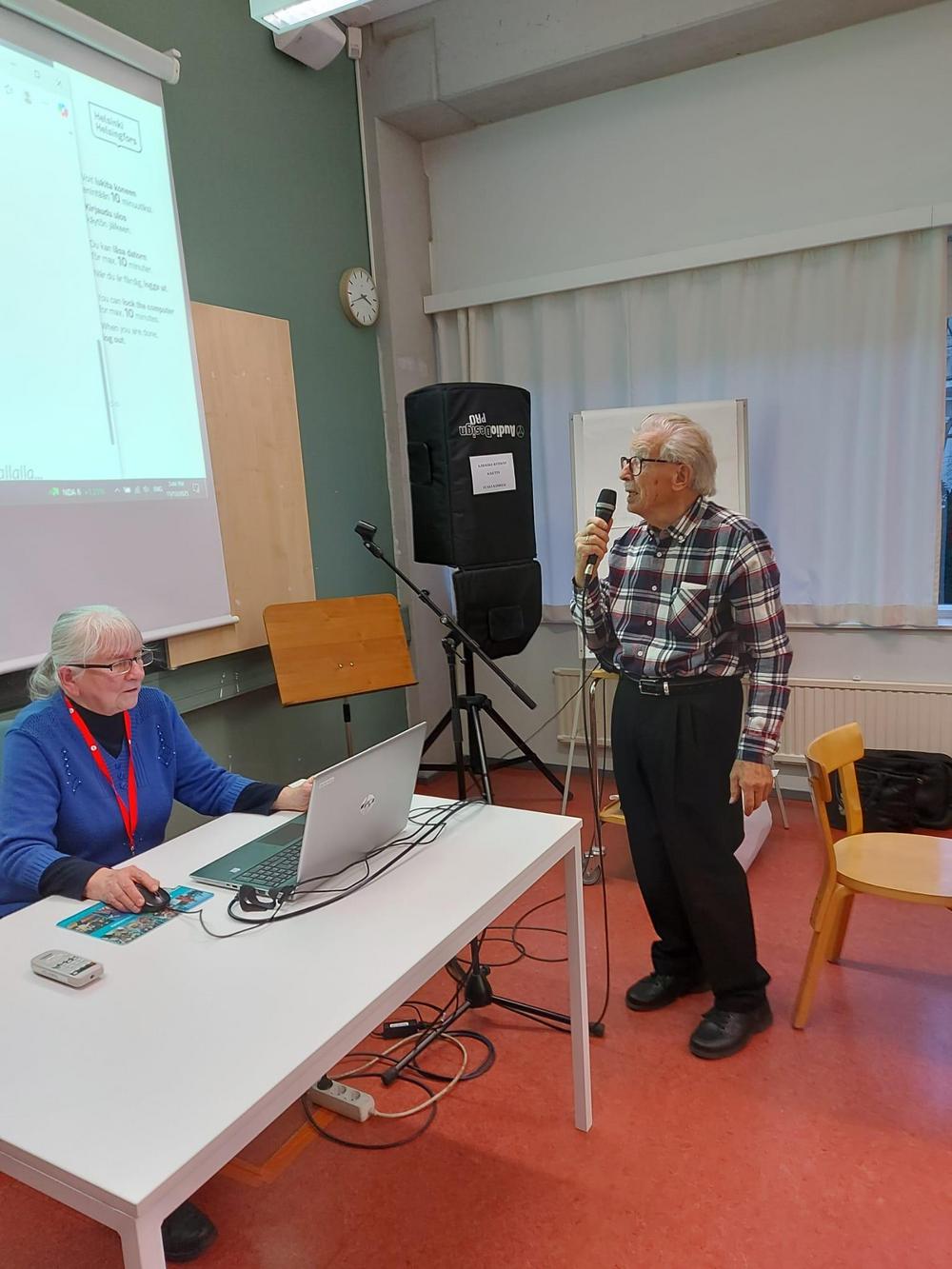 Kuvassa puheenjohtaja esittelee Vessin kotisivuja.