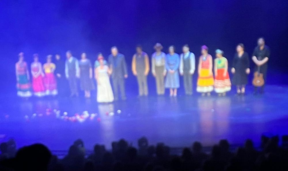 Tuo iskulause kuultiin myös esityksen lopussa. Ihanat espanjankieliset laulut (Petra Karjalainen) siivittivät sopivasti näytelmän tunnelmia.